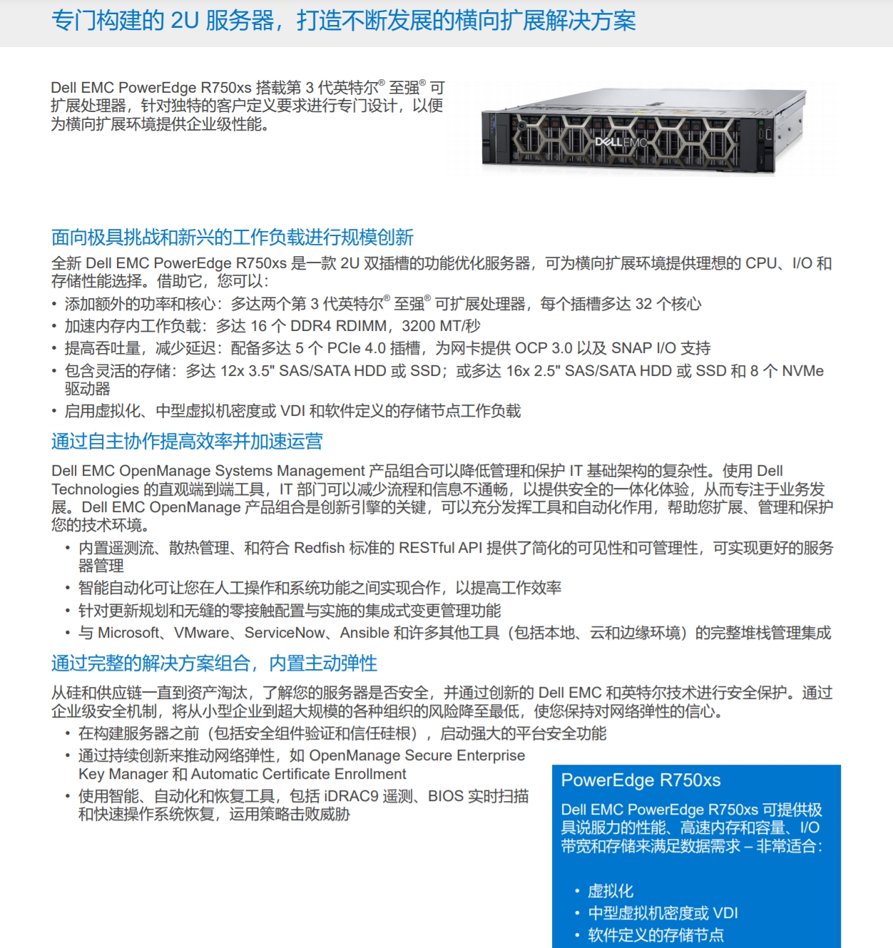 Dell EMC PowerEdge R750xs針對(duì)獨(dú)特的客戶定義要求進(jìn)行專門設(shè)計(jì),以便為橫向擴(kuò)展環(huán)境提供企業(yè)級(jí)性能。
