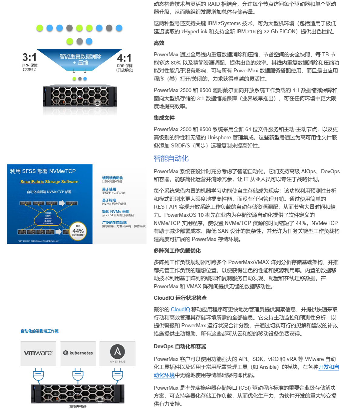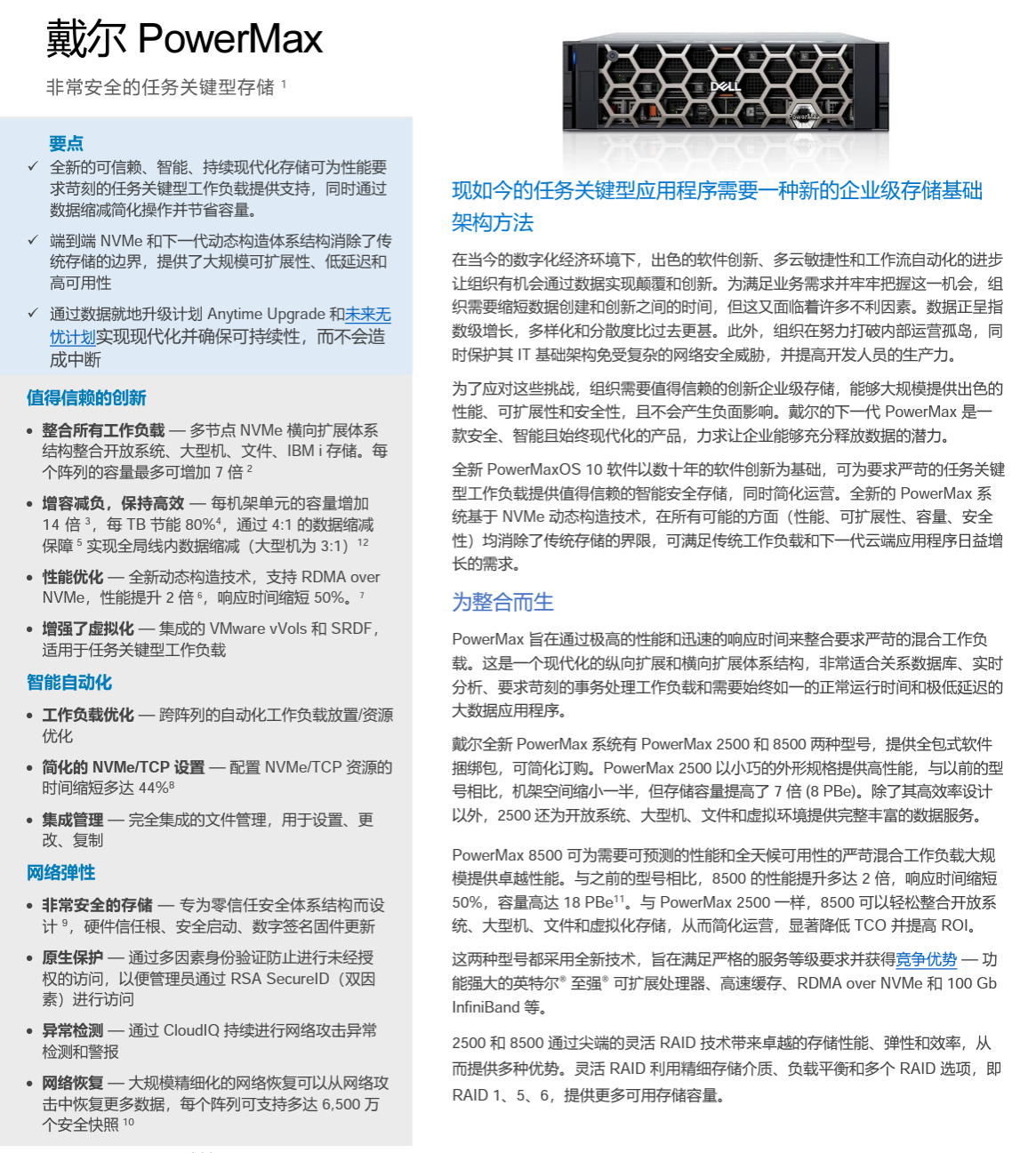高度安全、極具動態(tài)性的全自動化 PowerMax,助您做好萬全的準(zhǔn)備。憑借智能自動化和大規(guī)模條件下依然卓越的性能,靈活應(yīng)變,輕松滿足不同需求。借助這款軟件驅(qū)動型存儲解決方案,貴組織可以節(jié)省時間和資源,同時讓您有充足的機(jī)會,為下一步發(fā)展做好準(zhǔn)備。