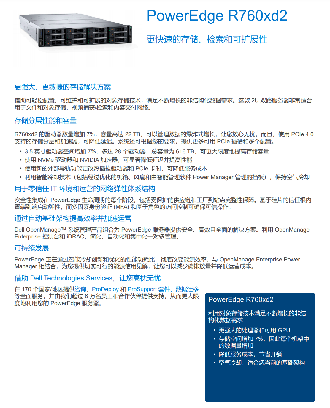 借助可輕松配置、可維護(hù)和可擴(kuò)展的對象存儲技術(shù),滿足不斷增長的非結(jié)構(gòu)化數(shù)據(jù)需求。這款 2U 雙路服務(wù)器非常適合用于文件和對象存儲、視頻捕獲/檢索和內(nèi)容交付網(wǎng)絡(luò)。
