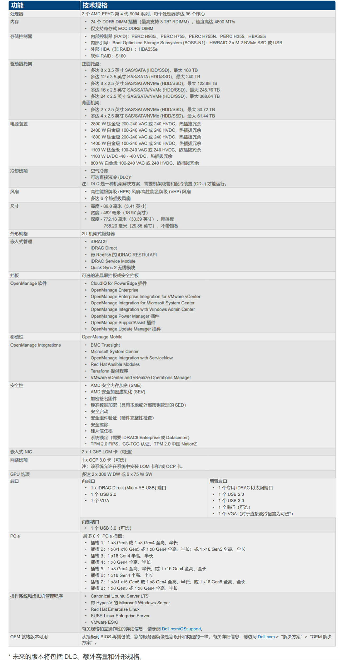 全新戴爾 PowerEdge R7625 是 2U 雙路機(jī)架式服務(wù)器。這款功能極其強大的服務(wù)器專為成為數(shù)據(jù)中心的主干而設(shè)計,可在空氣或直接液冷 (DLC)* 配置中提供充足的性能和靈活、低延遲的存儲選項。